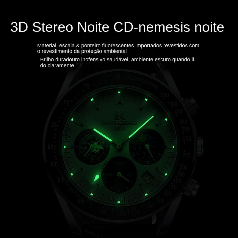 plus Ruizhiyuan - Relógio Masculino - Panda - Multi funcional - Impermeável - Relógio - Negócios - Namoro - Venda Quente
