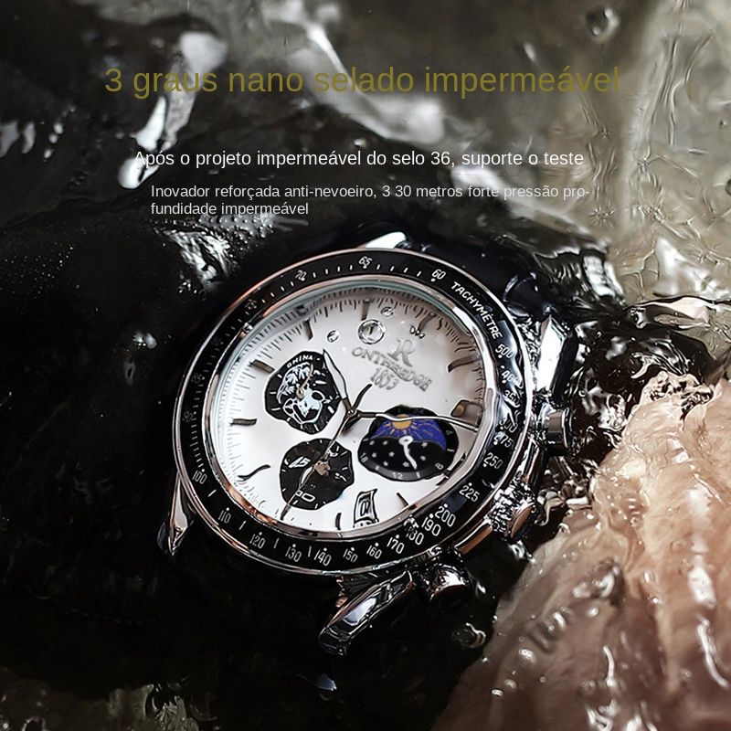 minus Ruizhiyuan - Relógio Masculino - Panda - Multi funcional - Impermeável - Relógio - Negócios - Namoro - Venda Quente